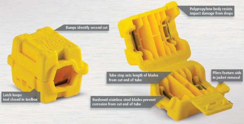 - Hardened stainless steel blades prevent corrosion from cut end of tube.
