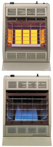 Blue Flame Heating: Think warm tropical breeze! Blue flame heaters warm the air, which rises to create natural circulation in the room.