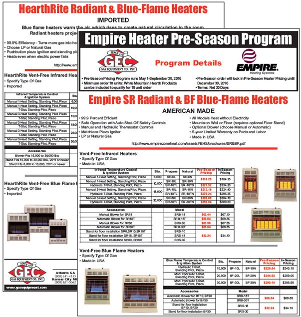 For your Winter HEATER needs, choose from Empire's Premium American-made SR-Radiant & BF-Blue Flame heaters or if Budget is a primary concern, select the Economical Empire HearthRite Radiant & Blue Flame heaters.