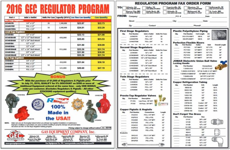 It includes First, Second, and Integral stage regulators & pigtails and hogtails featured in the pre-season program along with popular Presto-Tap valves, dielectric components, and installation PE piping, risers, copper tubing, and brass fittings.