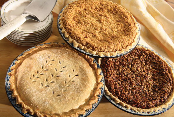 apple, dutch apple, blackberry, blueberry, cherry, peach, pumpkin, rhubarb, strawberry-rhubarb, key lime, custard, lemon meringue, banana cream, black raspberry cream, butterscotch cream, chocolate cream, chocolate peanut butter cream, coconut cream, peanut butter cream, red raspberry cream, pecan, black raspberry, red raspberry