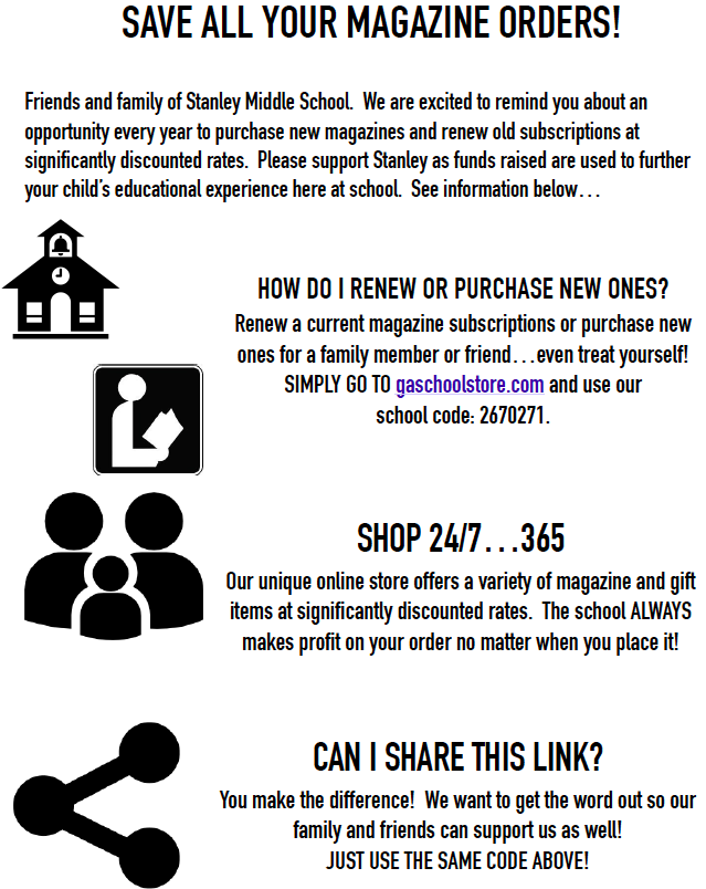 RAISE FUNDS FOR STANLEY BY RENEWING MAGAZINE ORDERS