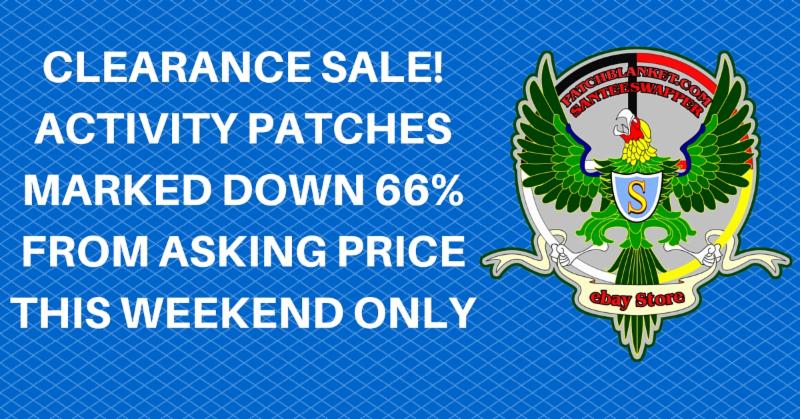 It's sorta awkward to describe a sale where you've marked everything down 2/3 off the asking price.  It just doesn't roll off your tongue but regardless I'm trying to blow out my inventory of council activity and district activity patches on eBay.