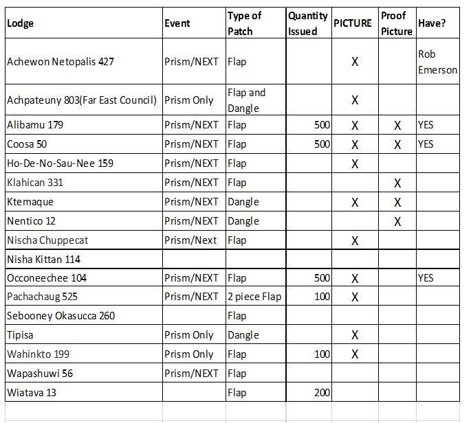 I think its really important for people in the hobby to step up and create helpful checklists and share information. So I want to give a shout-out to Matthew Coll who has been keeping track of all OA issues for this summers twin events Prism and NEXT. He is going to continue to update the spreadsheet. Other folks have done this for NOAC and it's always a big help.