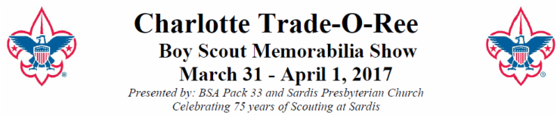 It has been more than 10 years since Jeff Cook and I tried to organize a pre-Dixie TOR on a Thursday evening/Friday morning format. I had a little hand in a 1-day show that happened a few years back in Florence, SC. So the idea of helping to put on a show is a little intimidating but the Cub Pack has lots of dedicated Scouters and manpower. With Chris Jensen and myself as anchor table renters I am hopeful that we can fill the room up. I was careful to make sure there are not any OA events scheduled on that weekend for the neighboring lodges. Of course in Scouting no weekend in the spring is conflict free.