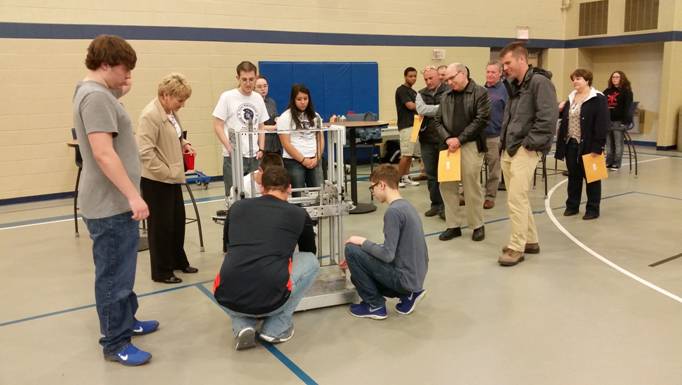 The Steel Trojans Robotics Team at the Career Magnet School held their first annual Sponsors' Reception. Representatives from Vacon, Inc., JLG Industries, Manitowoc Crane, Denis E. Black Engineering, Newcomer Associates, L.B. Water Service, BWise Manufacturing, Penn State Mont Alto Campus, and Brechbill & Helman Construction Company attended.