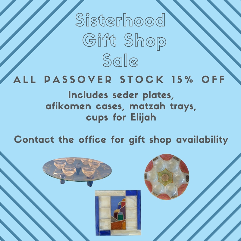 Gabbaim during Pesach: 1st day- Roger Perilstein (Shabbat) April 23 2nd day - David Rubin (Sunday) April 24 7th day - Matt Diamond (Friday) April 29 8th day - Elise Goldwasser (Saturday) April 30 For Wednesday Chol Hamoed, April 27th - Alan Mandel