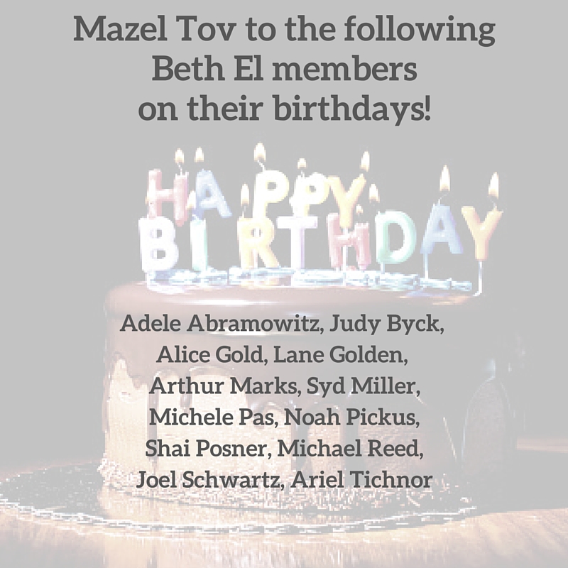 Do you have a Mazel Tov to share with the Beth El community? Mazel Tovs include the birth of a child, a new job, or something special that you would like to share! Email emily@betheldurham.org with the great news!