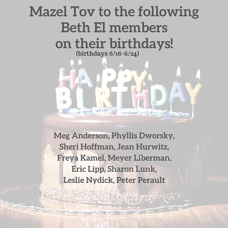 Do you have a Mazel Tov to share with the Beth El community? Mazel Tovs include the birth of a child, a new job, or something special that you would like to share! Email emily@betheldurham.org with the great news!