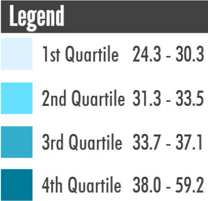 The figure below illustrates the variation of women's marriage rate among states in 2014 in the newly released profile, Marriage Rate in the U.S.: Geographic Variation, 2014. The highest marriage rates are in the Western region (top 25%), while the lowest marriage rates are in the Eastern region (bottom 25%). Comparing 2014 to 2013, Utah continues to have the highest marriage rate (59.2), and Rhode Island continues to have the lowest marriage rate (24.3). Alaska, Wyoming, and Washington, DC had the greatest increases of marriage rates in 2014. North Dakota, South Dakota, and Hawaii had the largest decreases of marriage rates in 2014. North Carolina, Illinois, and Massachusetts had virtually unchanged marriage rates since 2013.