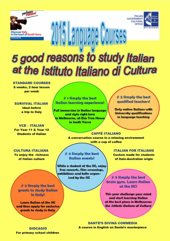 corsi.iicmelbourne@esteri.it or phone 03 9866 5931 or 03 9866 4729