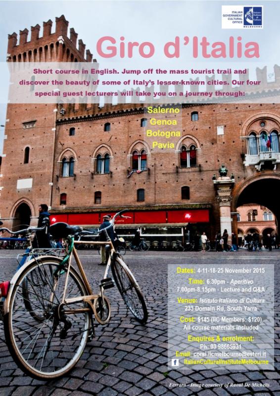 Time: 6.30 Aperitivo - Lecture and Q&A: 7.00pm-8.15pm