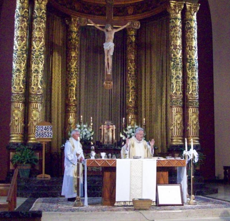 Fr. Joe Landi and Msgr Harriman celebrate Mass at St. Cecilia's Catholic Parish in San Francisco on the Feast of Corpus Christi.