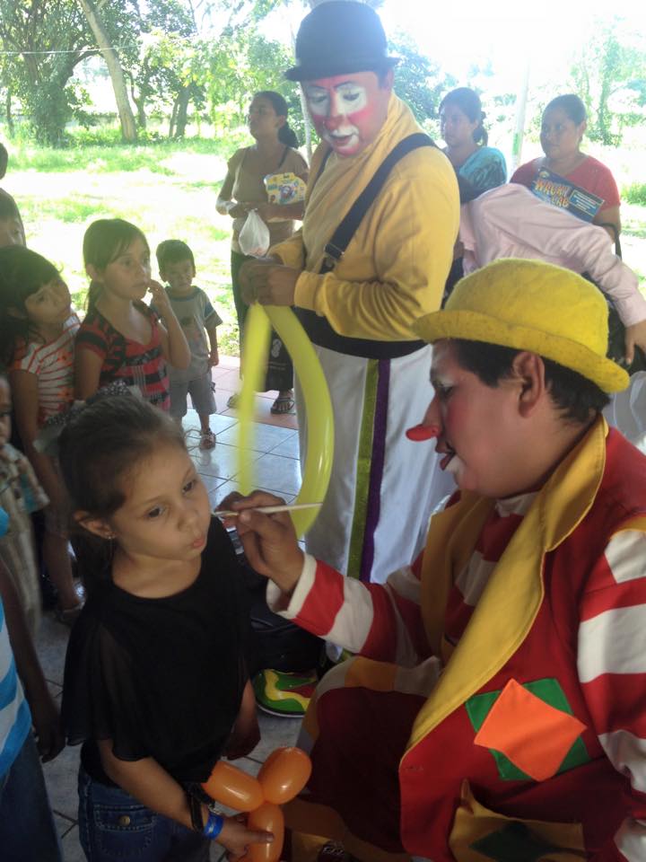 Crew Members of the Legend of the Seas paint faces of the children and make balloon animals for them.