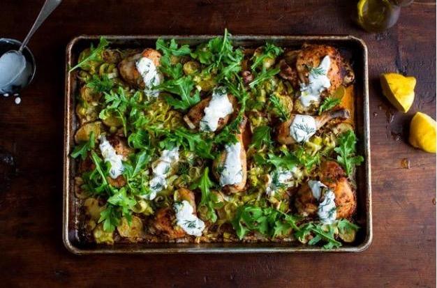 This is a New York Times recipe by Melissa Clark, and appreciate that it is all in one easy dish (a sheet pan), can be made with most any cut of chicken, can double easily to feed a crowd, and in the summer can easily be done on the grill if you don't want to heat the oven.