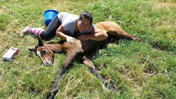 To begin with, I immediately imprint a foal within a few hours of birth: touching all over, including patting hooves, rubbing on the belly, scratching ears, moving the tail around and gently lifting up the foal. This process helps to establish humans as leaders and helps get foals used to being handled from the get-go.