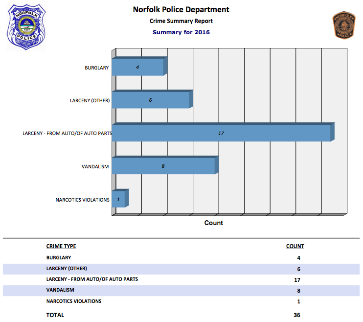 There were 36 crimes reported since January 1st, which is comparable with last year. Of the 4 residential burglaries, one was domestic, one involved a laptop taken through an open window, and two were attempted burglaries with nothing taken. The majority of crimes continue to be larcenies involving autos. They have been sporadic, and fortunately the police were able to make some arrests. No vehicles have been stolen compared to 5 during the same period last year, so it appears residents are being more conscientious about removing spare keys from their vehicles and locking their doors. The police were also able to take into custody a man who asked inappropriate questions to young girls in the neighborhood. Several residents helped to make this possible which is what the neighborhood watch is all about. So please remain vigilant, and if you see suspicious activity report it immediately to the police so they can check it out. Chuck Davis Neighborhood Watch Coordinator 440-1081