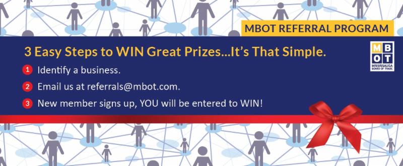 With our Member Referral Program, you can help us spread the word about the value of your membership to your business contacts. Every time you refer someone to MBOT and that company becomes a member you'll be entered into a draw for a Prize. The winner will be announced at our GMM events every quarter starting March. The grand prize of 2 Delta airline tickets will be at our Annual General Meeting in December 2016. You will also receive a free networking voucher for every single referral!