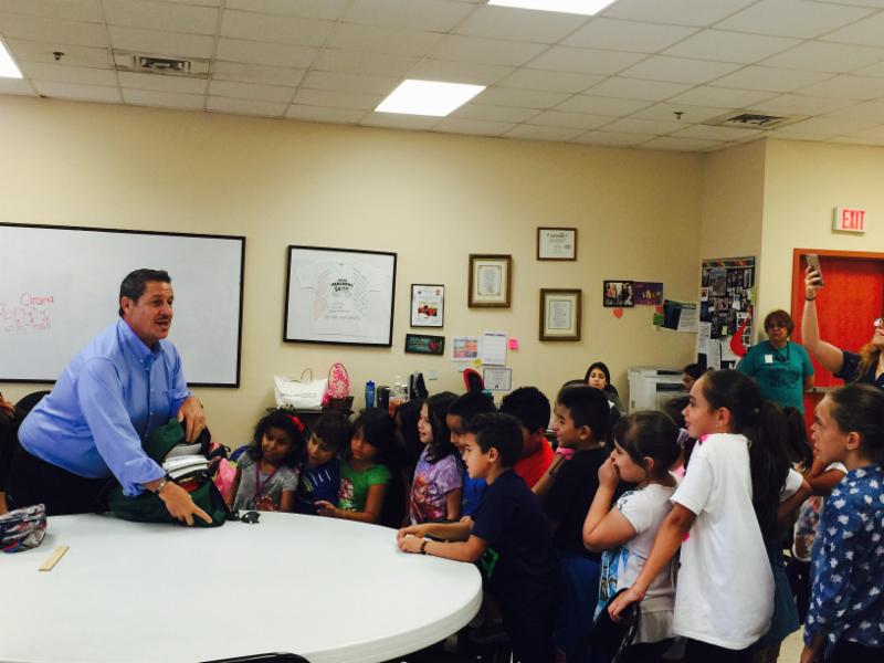 Commissioner Diaz gives backpacks to children in District 12