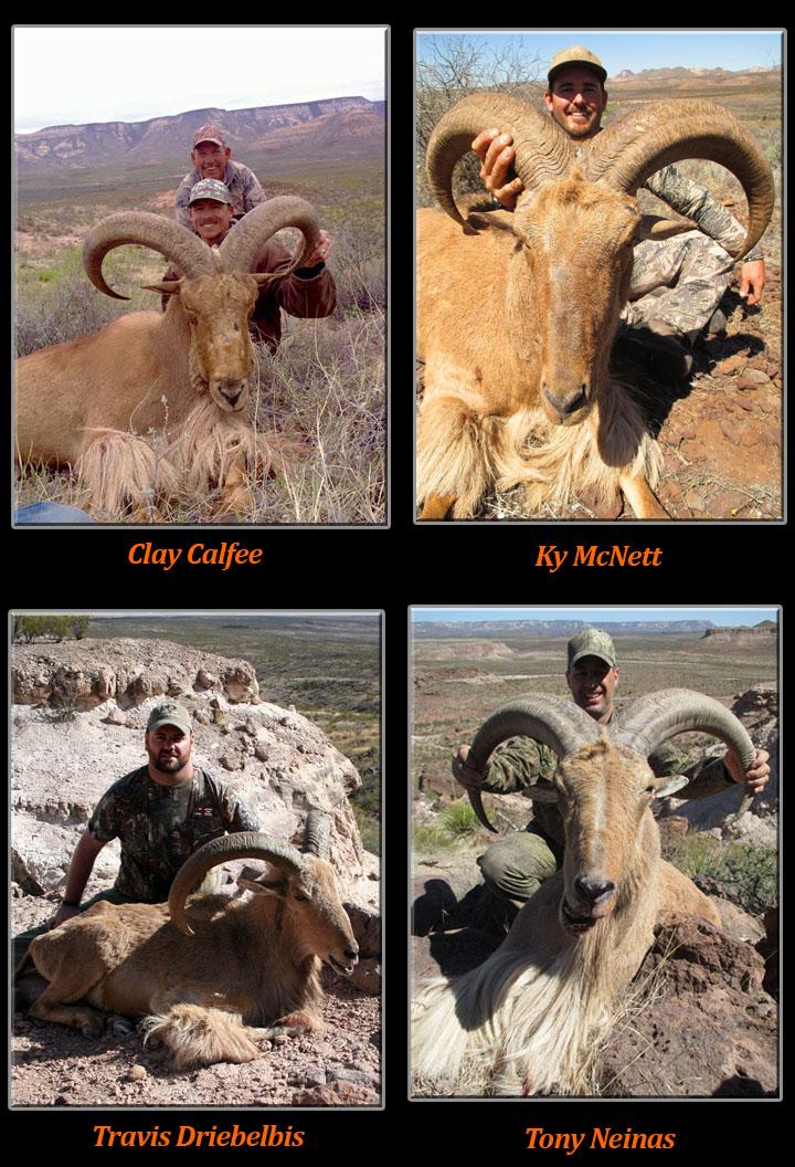 As you can see from the accompanying photos, things have been extremely busy over the last few months. Between nilgai antelope, aoudad sheep, spring turkey, and various other exotics, we have had a steady flow of clients coming through our camps. We are getting ready to wind down most of our scheduled spring hunts, but we'll have a steady trickle of exotic game hunts going on over the next few months.
