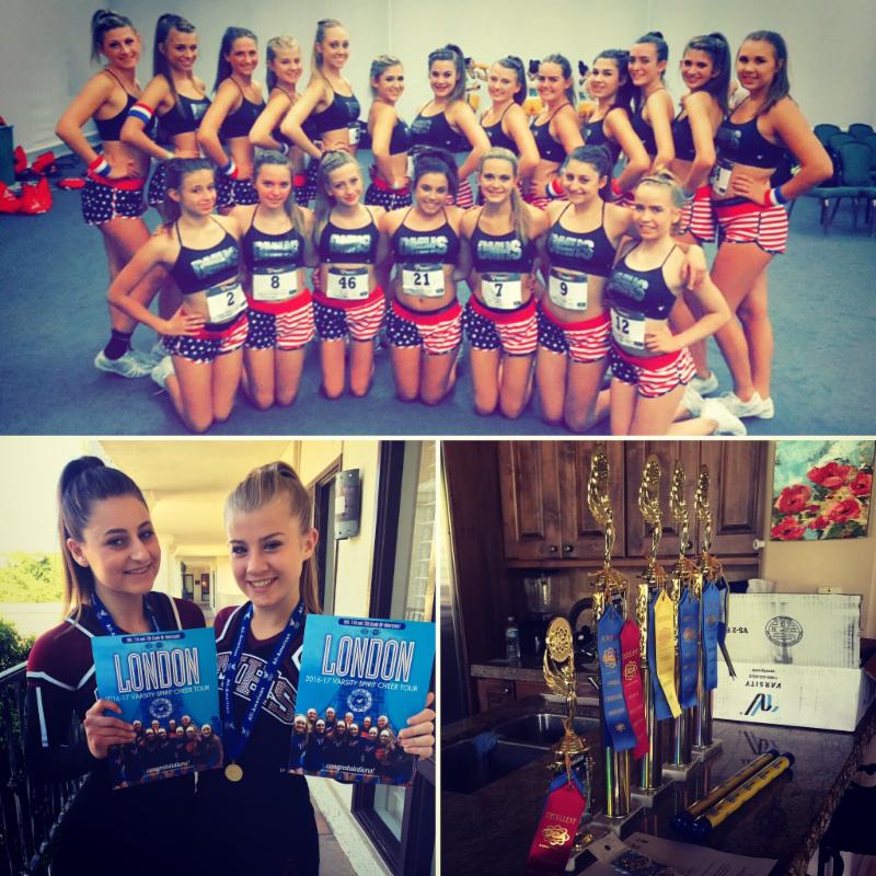 Congratulations to DM Varsity Cheer who received multiple trophies at the invite only UCA Masters Cheer Camp this summer! A special shout out to Team Captain Megan Hillier, and Natalie Moffitt, both seniors, for being awarded the top honor of All-American Cheerleader with invites to participate and represent the USA at the New Year's Parade in London, England! Way to go girls! Go Wolves!