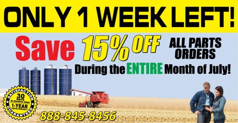 There is only 1 week left to take advantage of our 15% OFF ALL Parts Orders.