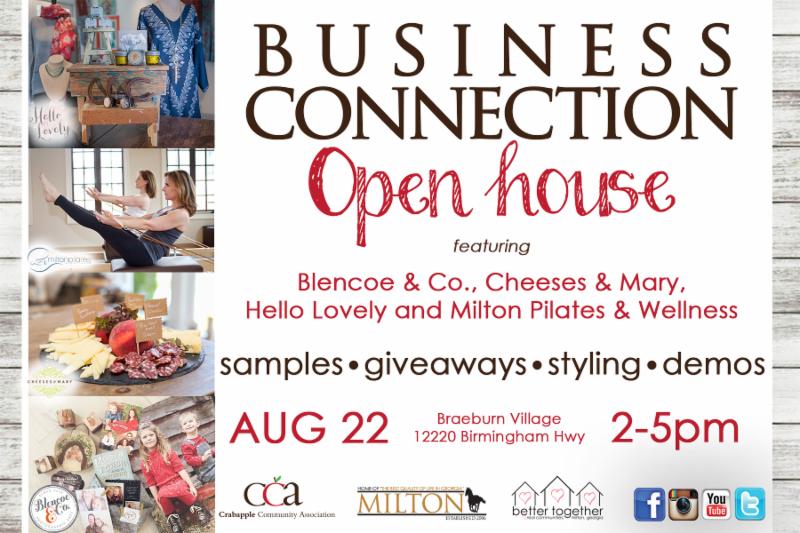 Join Better Together, Milton's citizen volunteer committee, and the Crabapple Community Association for a business connection event showcasing Blencoe & Co., Cheeses & Mary, Hello Lovely and Milton Pilates & Wellness.