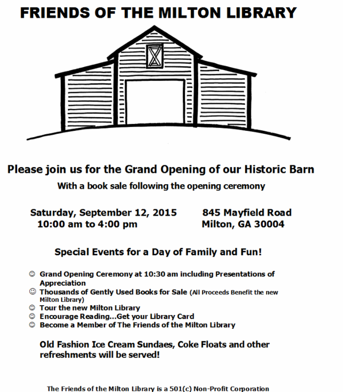 Friends of the Milton Library Barn Grand Opening Sept. 12