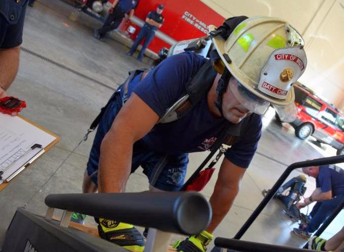 The physical agility portion of the program includes 10 firefighting related tasks, i.e. ladder climb, hose pulling, victim rescue, and stair climb.