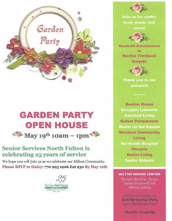 Join Senior Services North Fulton to celebrate 25 great years of service with a Garden Party and Open House! RSVP by May 12.