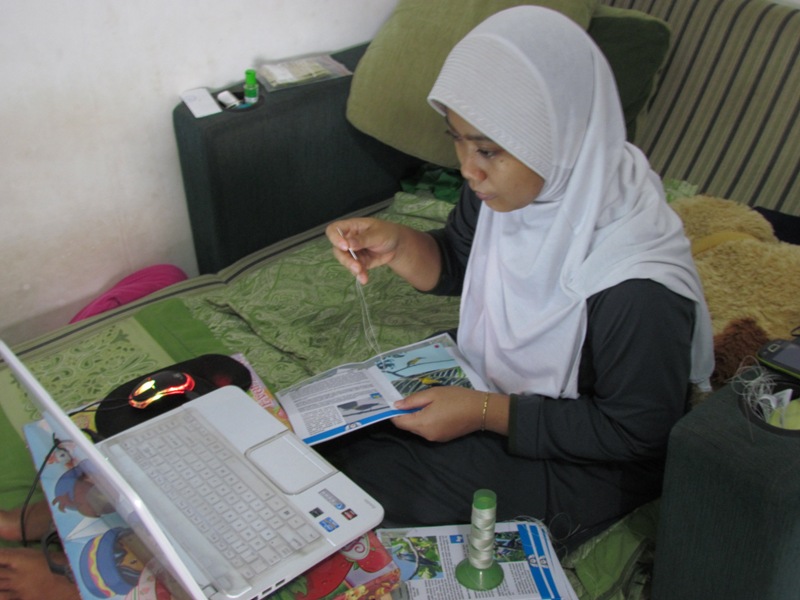 First and perhaps, most important, we are teaching the school children (and adults) about their cockatoo, and why and how to conserve them. It would take a paradigm shift in their almost non-existent knowledge, and and a resurgence in pride in their cockatoo in order to enlist their protection of this parrot.To accomplish this, Dudi and Dwi carried out what we call our C-A-P (Conservation-Awareness-Pride) Program which involves extensive interaction with and intensive teaching of the villager children, involving production and donation of t-shirts , backpacks, coloring books and stickers with pictures of cockatoos with conservation messages; and took some of them on bird-watching trips, which they had never done previously. These static objects were reinforced with videos made by us, allowing us to show the cockatoos and teach about conservation in an enjoyable and visually stimulating way.