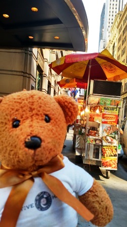Wellbearto had never seen a food cart before. It was really delicious but not healthy. He had some yummy falafel!