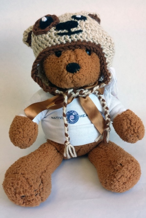Wellbearto saw this beautiful hat and had to try it on. Hooks and Needles, a knitting group made beautiful hats, scarves, booties and more for NATIVE HEALTH patients and clients. Wellbearto couldn't part with his hat! He loves it and wears it all the time! Thank you to Hooks and Needles for their generous donation.