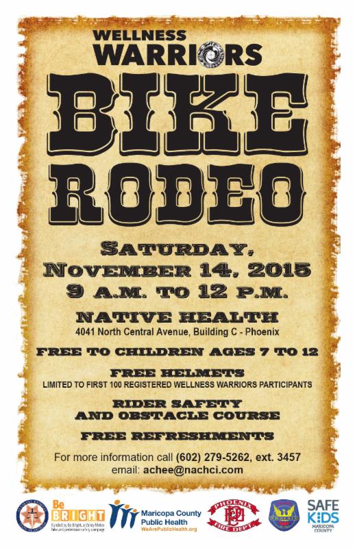 The NATIVE HEALTH Wellness Warriors Program is currently looking for Native American children (ages 7-12) and their families, who are interested in learning and promoting healthy living. Our next event is coming up very soon! The Bike Rodeo is just around the corner, so make sure you've got your bikes ready.