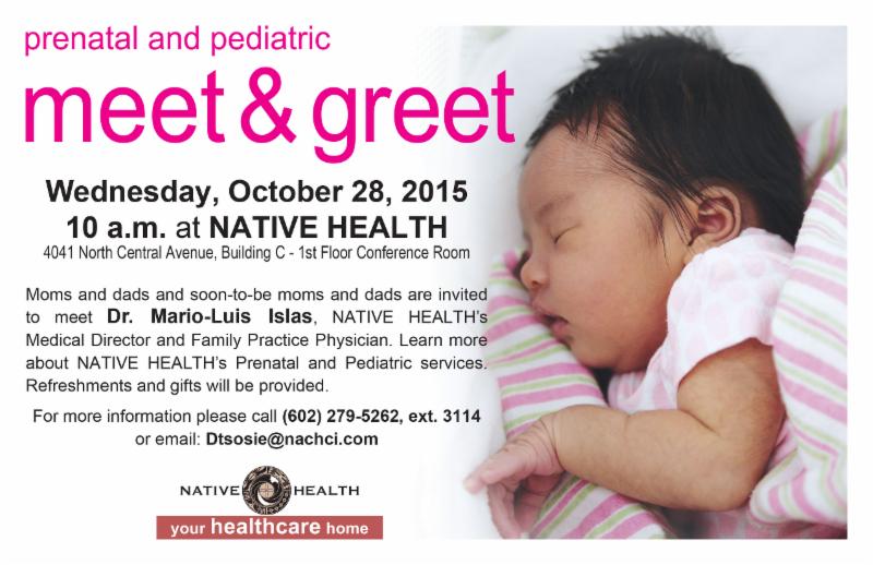Prenatal/Pediatric Meet and Greet - Wednesday, October 28, 10:00 a.m.-noon. NATIVE HEALTH Central. All are welcome.