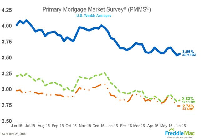 - 30-year fixed-rate mortgage (FRM) averaged 3.56 percent with an average 0.6 point for the week ending June 23, 2016, up from last week when it averaged 3.54 percent. A year ago at this time, the 30-year FRM averaged 4.02 percent.