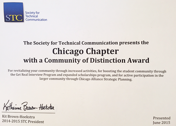 Society for Technical Communication 2015 STC Community of Distincation