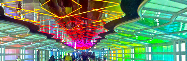 Chicago is full of unique art installations in the city - even in the airports. At O'Hare, travelers walking to and from the United terminal can enjoy a neon walkway entitled, Sky's the Limit.