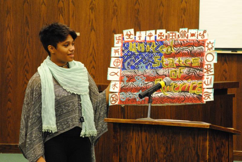 Royal was the recipient of The Lepley, Engelman and Yaw Award for demonstrating exceptional understanding of the Law Day Topic with her artwork (at right), which featured a depiction of the American flag with a variety of religious symbols to represent the country's diversity. Sagan was recognized for her essay based on the theme of the Magna Carta, answering the prompt: "Why are rules important?"