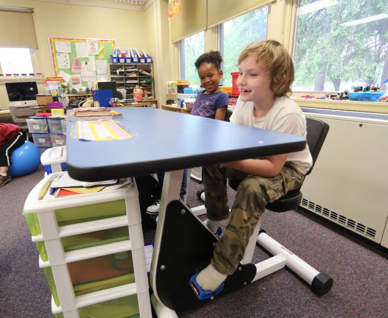 With help from both foundations, Garrison purchased sets of kinesthetic desks, which allow students to use movement, such as pedaling, to facilitate cognition, maximize brain function and anchor learning all while seated or kneeling.