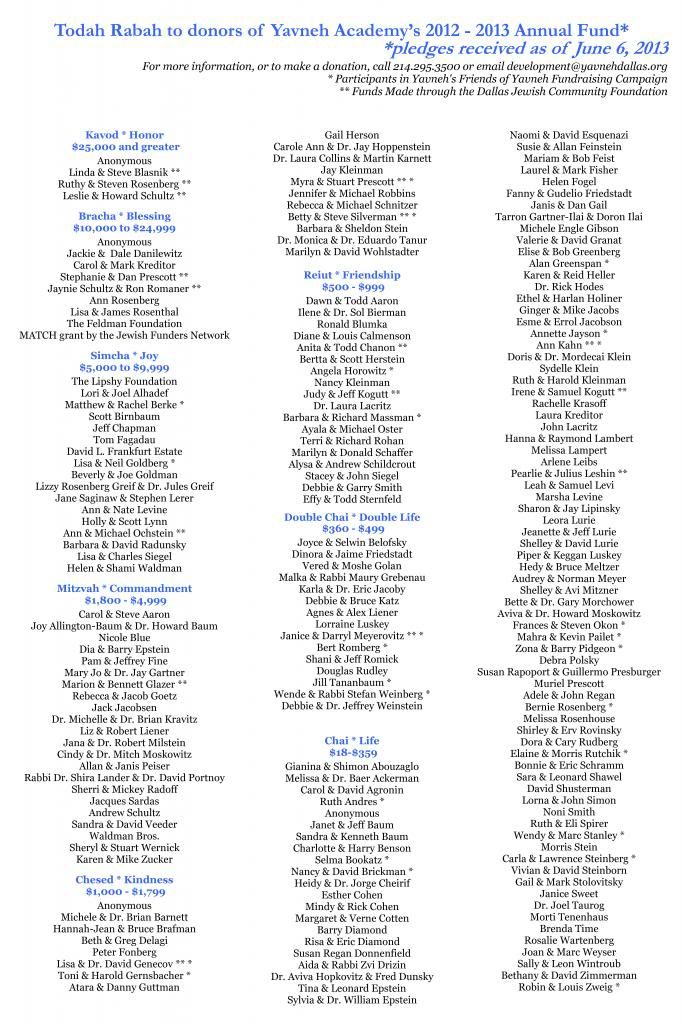 Dear Yavneh Family,