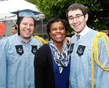 2008 YavnehAlum David Fine and Daniel Bonner with Yavneh MathChair Veronica Thomas at the May 19 Columbia University Baccalaureate Ceremony |