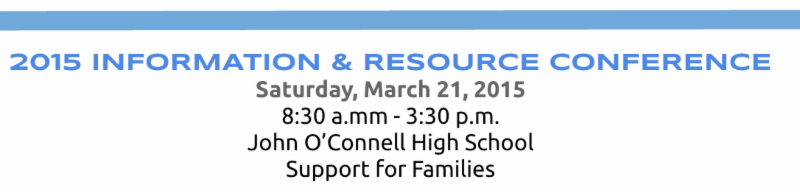 On Saturday, March 21 Support for Families, partnering with SFUSD and the CAC will host the annual Information & Resource Conference! The keynote speaker this year is Frances Stetson, leader of the Inclusive Schools Network. This is a FREE conference for families. Participants will have 27 different morning and afternoon workshops to choose from. Enjoy a light breakfast and lunch and walk the exhibitions from over 75 Bay Area organizations. Last year 286 parents and families attended and 170 professionals. This annual conference is a great way to learn more about services, supports and innovation available to you and your family. Want to learn more? Click here for additional information. Interested in registering? Click here. We hope to see you there!