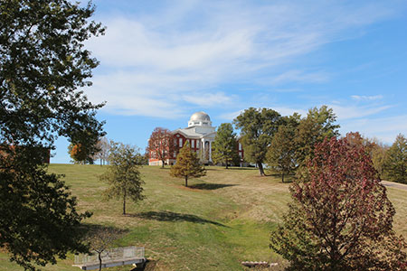 This exquisite view is from the Alpha Xi Delta memorial site, planned for the south-side of Johann Memorial Library. Please consider participating in the building of this memorial. The project is being funded through the sale of brick pavers, limited outdoor seating, and donations. The pavers and seating have naming rights.