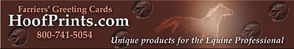 ABOUT THE COMPANY AND THIS NEWSLETTERFarriers Greeting Cards was started by Gina Keesling in 1986 (in a very small way) to provide helpful promotional materials for farrier husband Rob. Along the way the company became HoofPrints.com, too, adding a selection of fun horse and dog products geared toward women of a certain age. This newsletter is emailed to subscribers a few times a month, depending on how often I have something to share. Watch for special sales, interesting stories, uplifting quotes and more.
