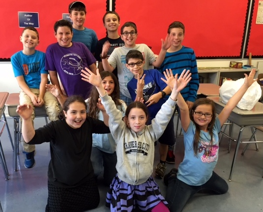 | | Morah Ahuva's Kitah Gimmel (3rd grade) plays a game to review terms for good and bad deeds. |