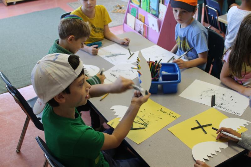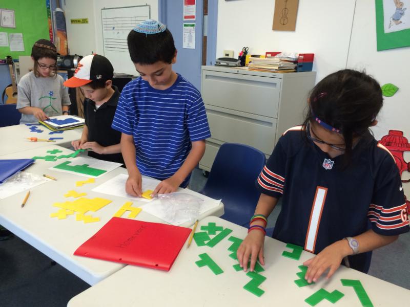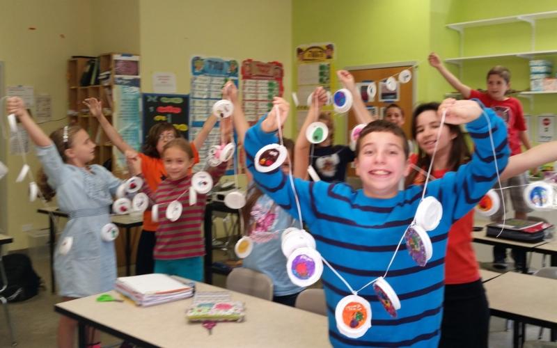 | | Mrs. Wiesenfeld's 5/6th grade class makes Sukkah decorations. |