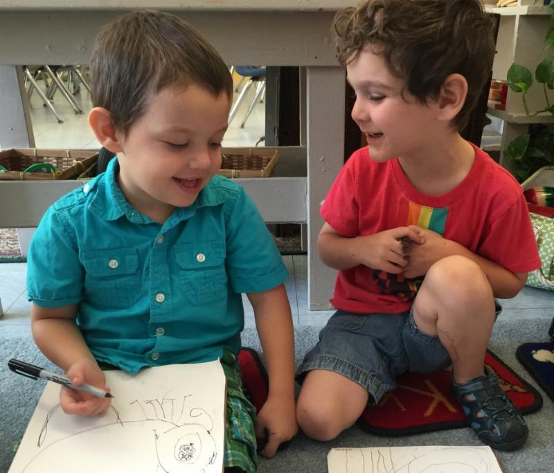 | | The Blue Room has been buzzing with bees! Matthew and Daniel work on their anatomy of a bee drawings. |