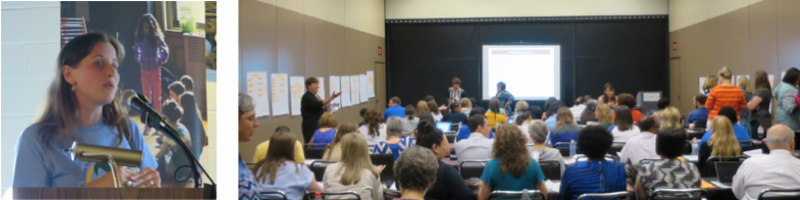 A Eureka Math Champion offering a testimonial our Great Minds reception (left) after a full day of Eureka PD session at the Teacher Leader Summit in New Orleans (right)