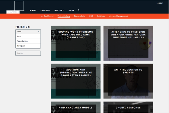 Videos are an invaluable development tool. GreatMinds.org features a fully redesigned video gallery with over 1,000 searchable videos. The Gallery also includes quick filters for easy browsing.
